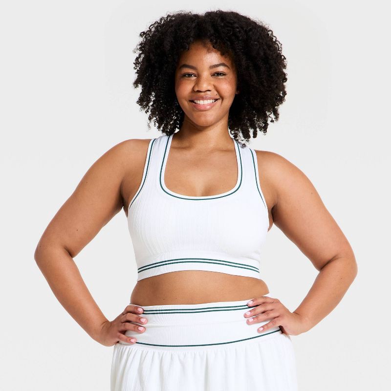 Women's Seamless Cable Knit Racerback Sports Bra - All In Motion™ White XXL
