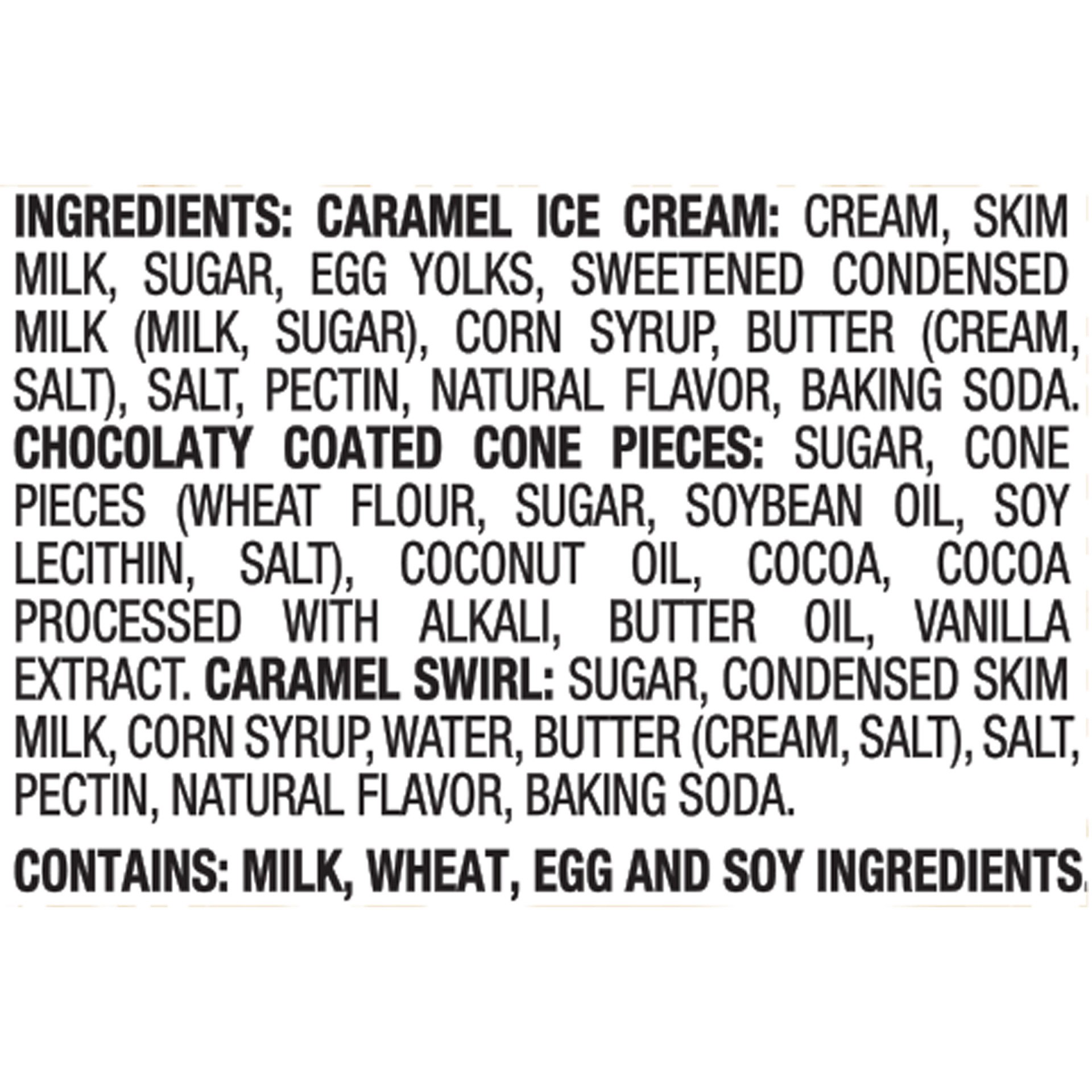 Cream, Skim Milk, Sugar, Coconut Oil, Sweetened Condensed Milk (Condensed Milk, Sugar), Egg Yolks, Wheat Flour, Corn Syrup, Butter (Cream, Salt), Cocoa Processed with Alkali, Cocoa, Salt, Soybean Oil,…