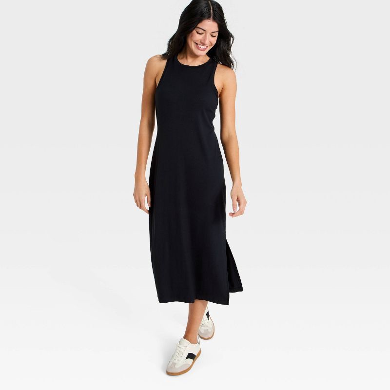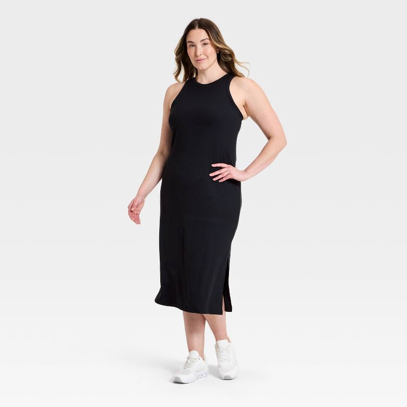 - Must-have features: built-in shelf bra, crewneck, racerback, midi length, side slit