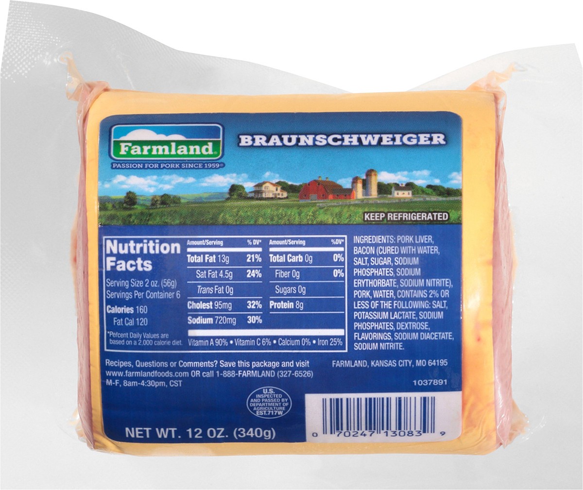 - Farmland Braunschweiger contains 8 grams of protein per serving and is gluten free