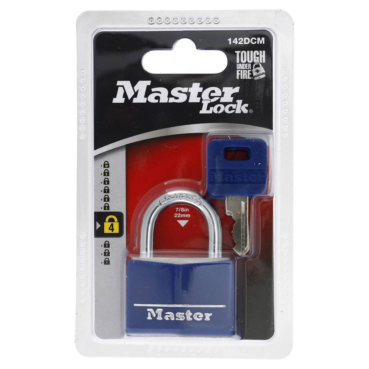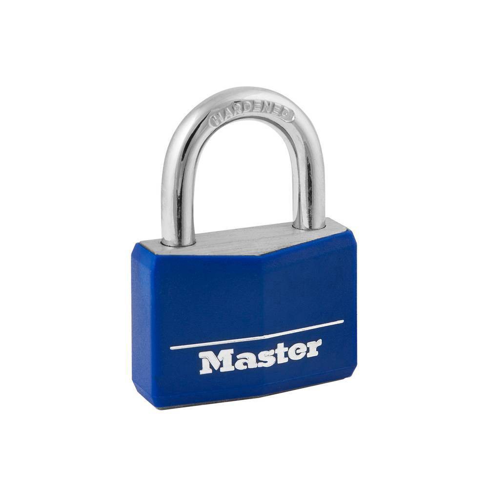 The Master Lock 142DCM Covered Aluminum Keyed Padlock features a 1-9/16 in. (40mm) wide black vinyl covered body for scratch and corrosion resistance. The 1/4 in. (6mm) diameter shackle is 7/8 in. (22…