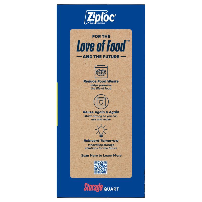 - Food Preservation: Help extend food and freshness with Ziploc® Quart Storage Bags