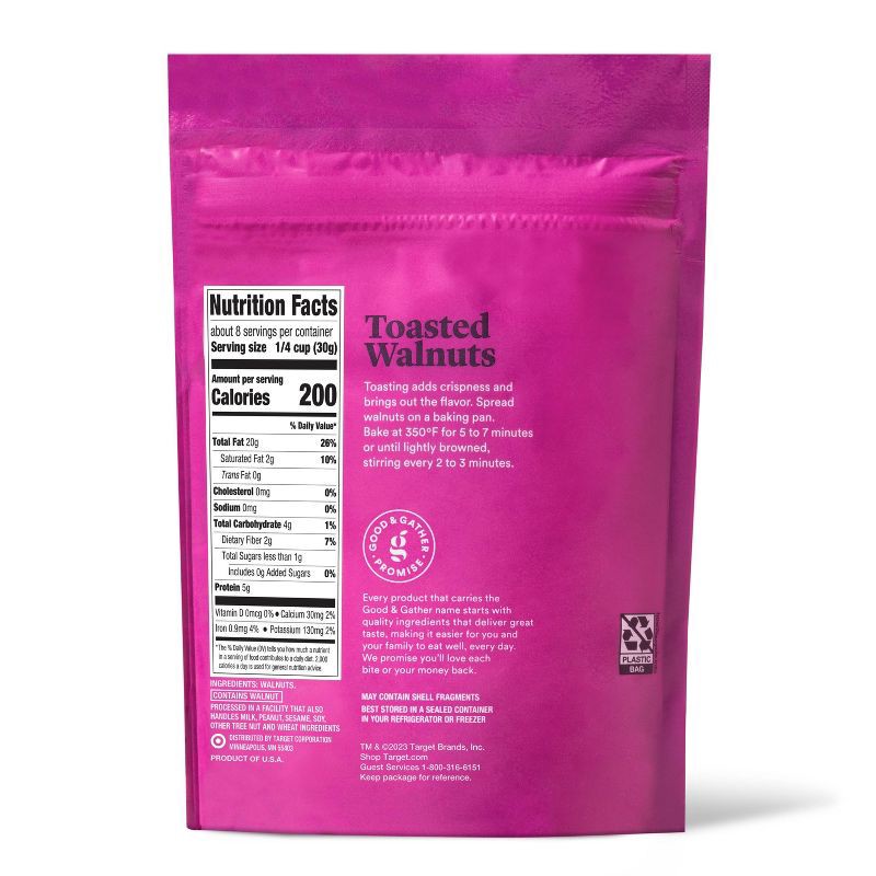 Keep a pack of Chopped Walnuts from Good & Gather™ on hand in your pantry for a recipe-ready addition to enhance everything from baked goods to salads. This resealable package of chopped walnuts conta…