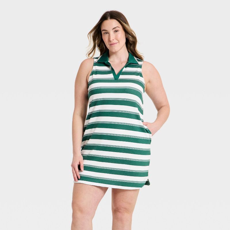 Women's Airy Sleek Dress - All In Motion™ Forest Green Stripe XXL