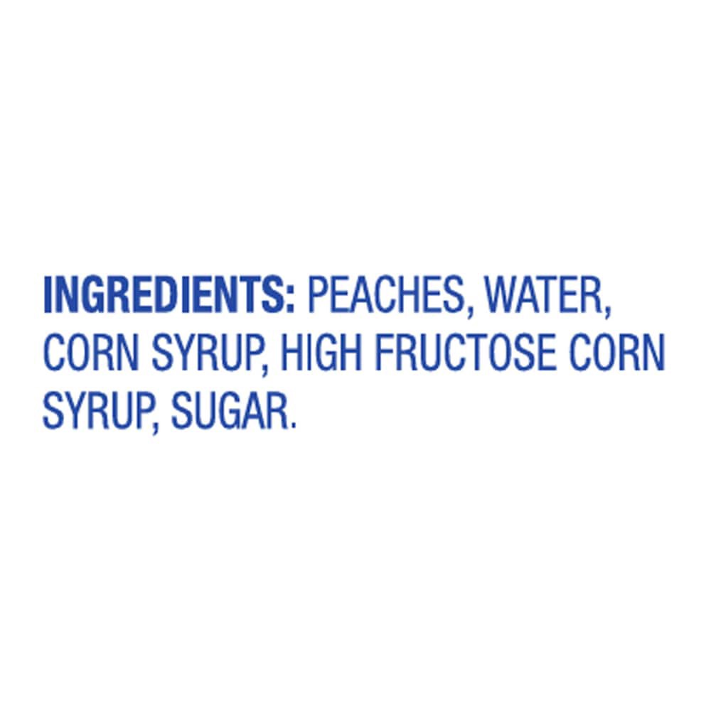 Ingredients: Peaches, Water, Corn Syrup, High Fructose Corn Syrup, Sugar.