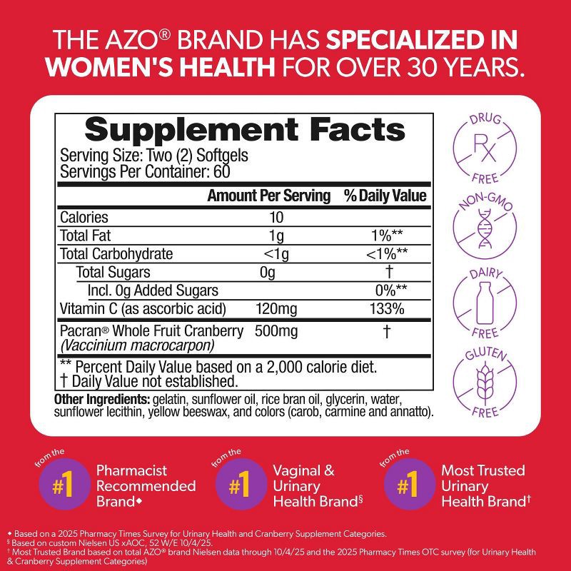 - CONVENIENT, EASY TO SWALLOW SOFTGELS help maintain a healthy urinary tract. AZO Cranberry is beneficial to both men and women