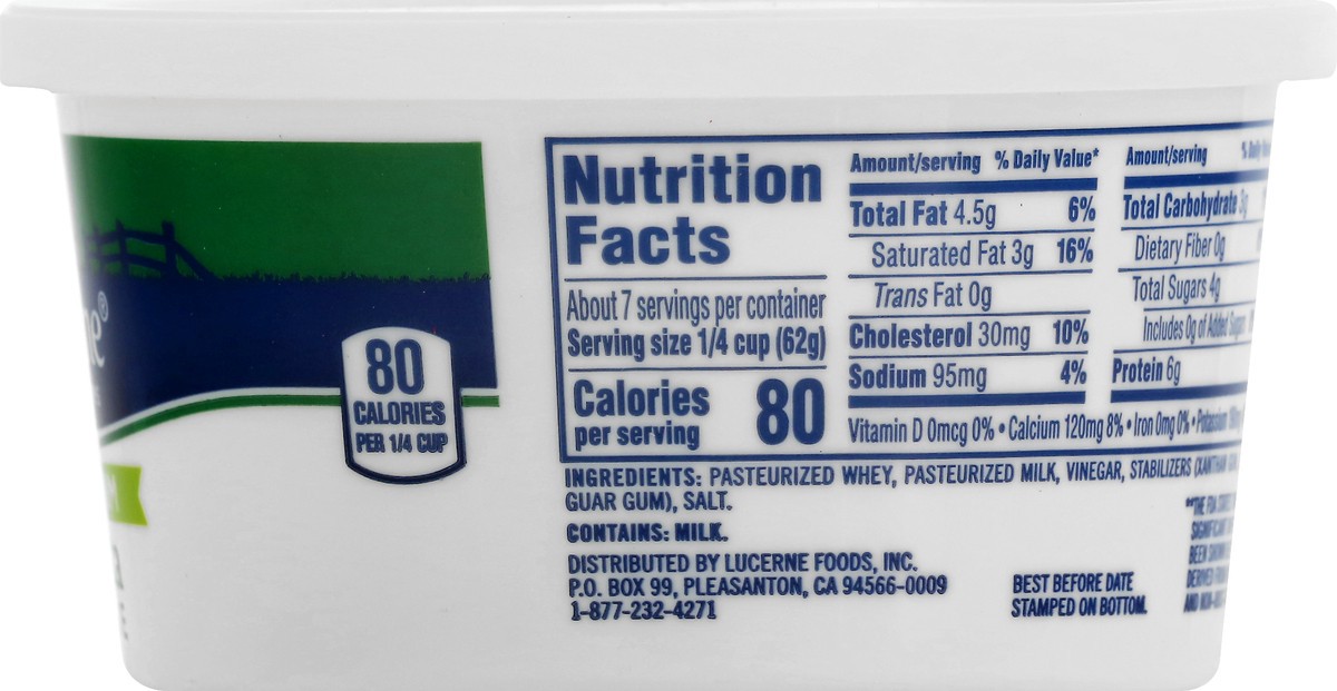 Pasteurized Whey, Pasteurized Milk, Vinegar, Stabilizers (Xanthan Gum, Locust Bean Gum, Guar Gum), Salt.