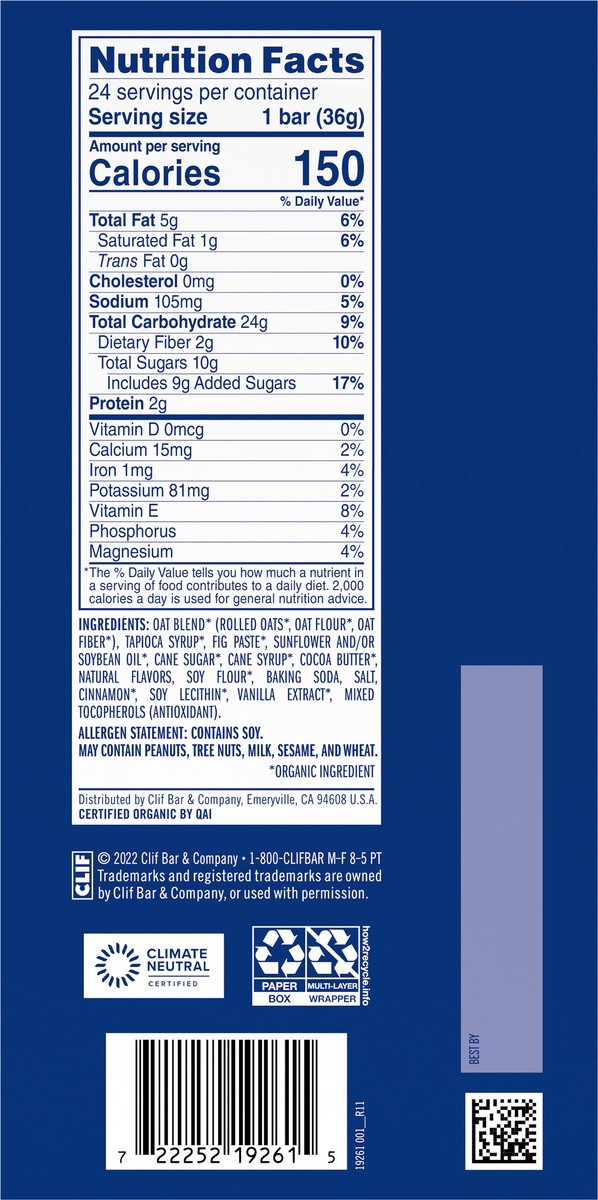 Oat Blend (Organic Ingredient) (Rolled Oats (Organic Ingredient), Oat Flour (Organic Ingredient), Oat Fiber (Organic Ingredient)), Tapioca Syrup (Organic Ingredient), Fig Paste (Organic Ingredient), S…