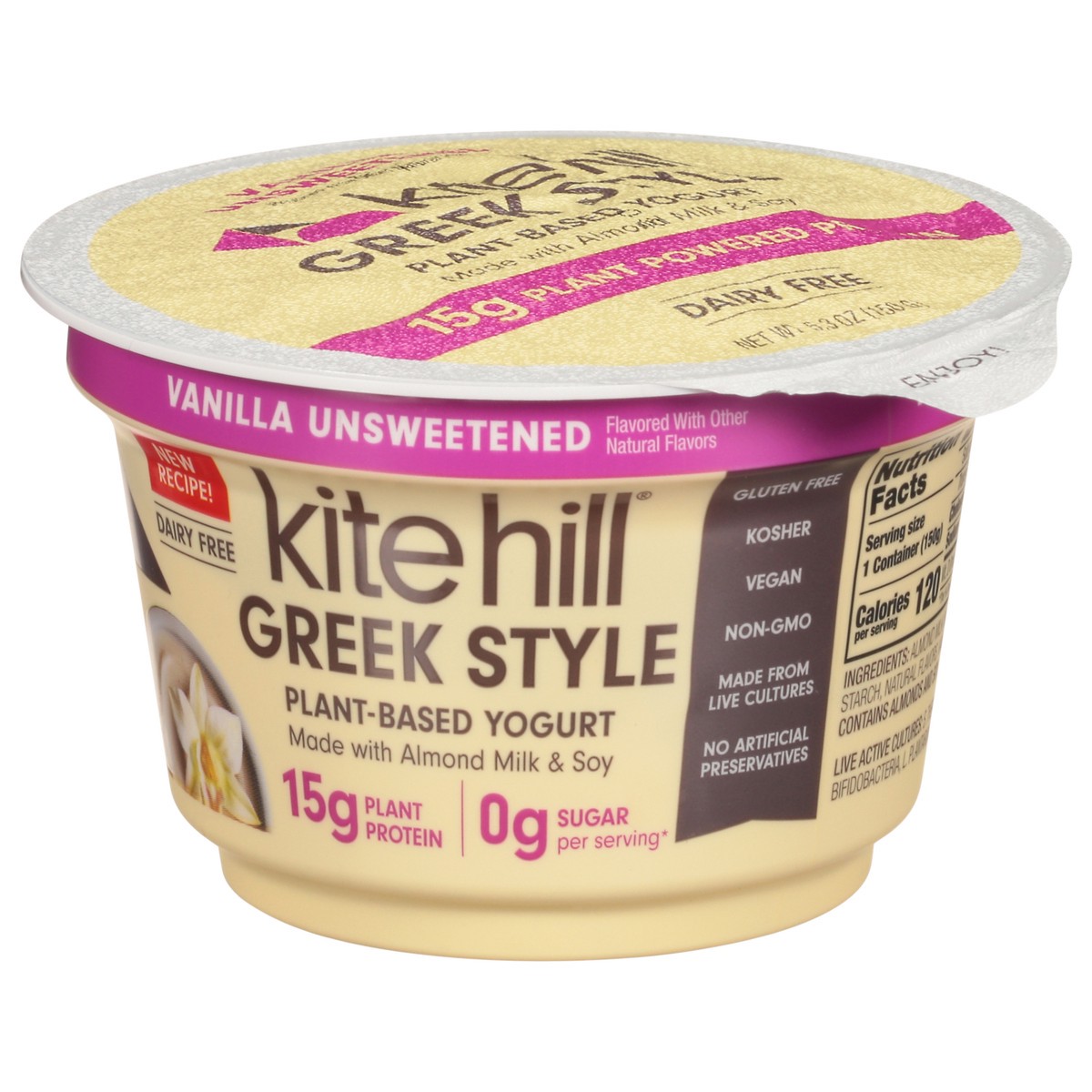 Kite Hill Unsweetened Vanilla Greek Style Plant-Based Yogurt 5.3 oz
