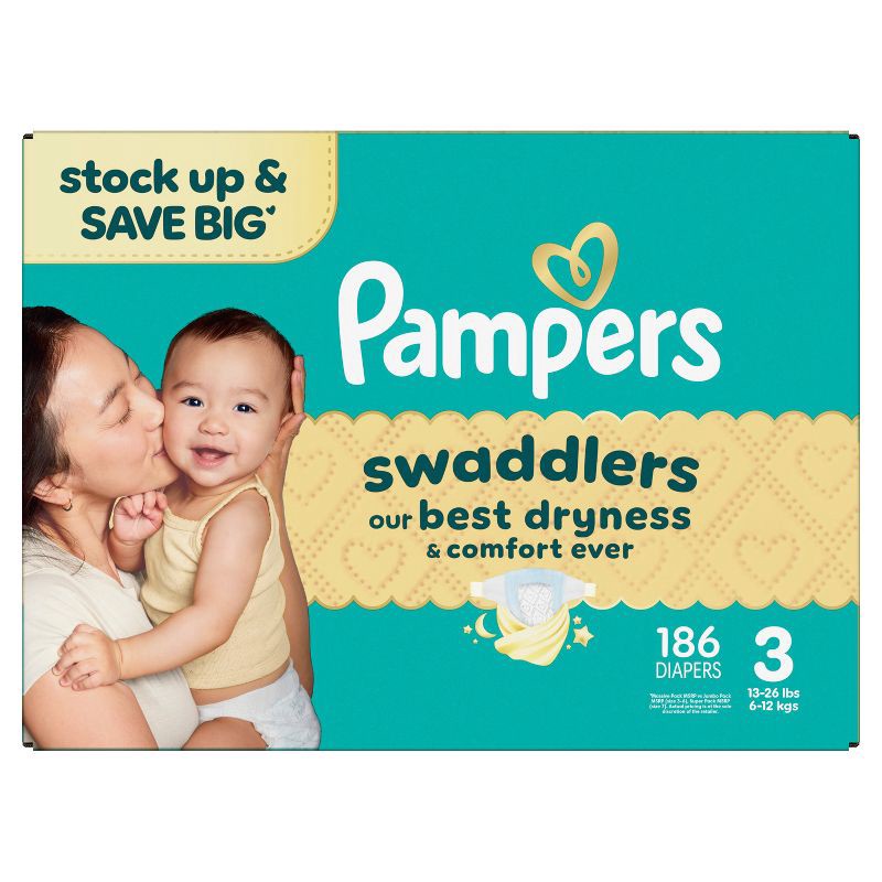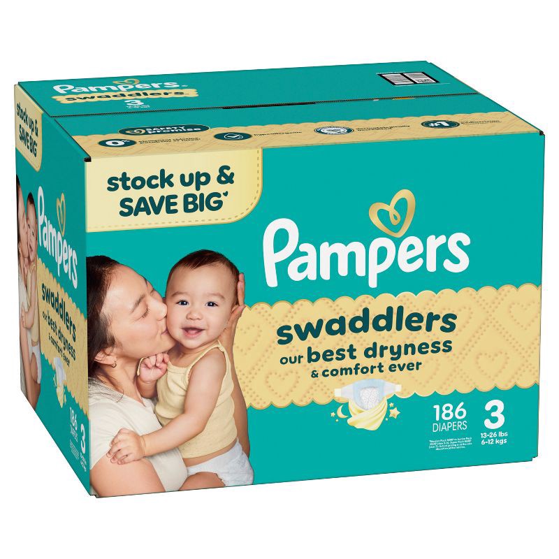 Wrap your baby in our best dryness and comfort ever. Try Pampers Swaddlers. These Pampers disposable diapers are designed with a KeepDry Liner and irresistible pillowy softness to keep your baby dry a…