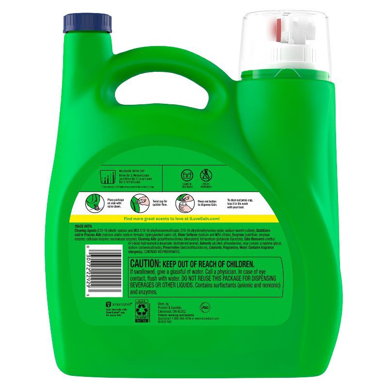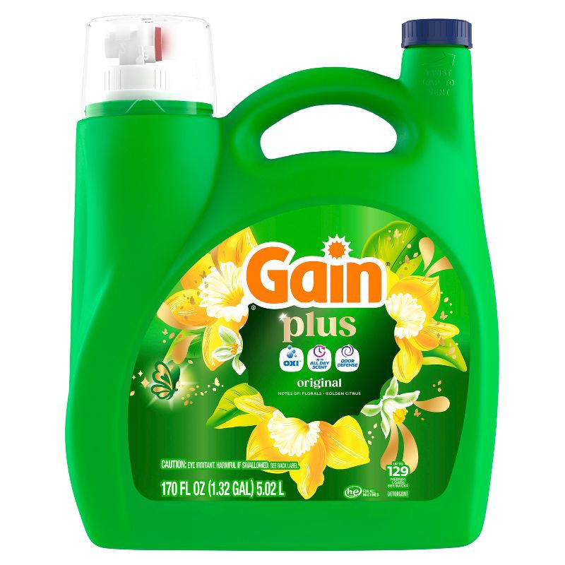 - PACKAGE CONTENTS: Includes one 170 fl oz jug of Gain Plus Liquid Washing Detergent in Original Scent, good for 129 Medium Loads