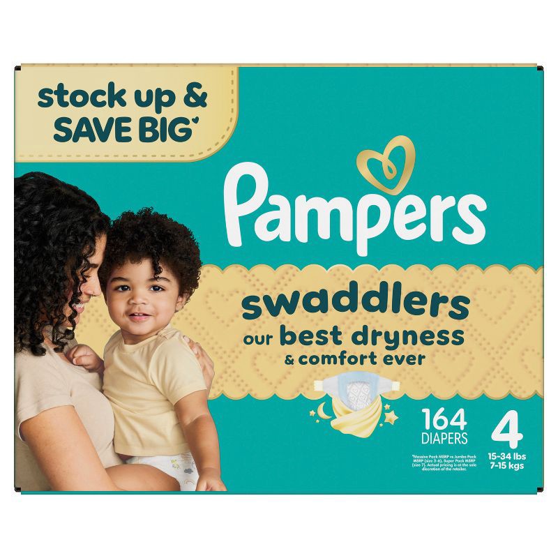 Wrap your baby in our best dryness and comfort ever. Try Pampers Swaddlers. These Pampers disposable diapers are designed with a KeepDry Liner and irresistible pillowy softness to keep your baby dry a…