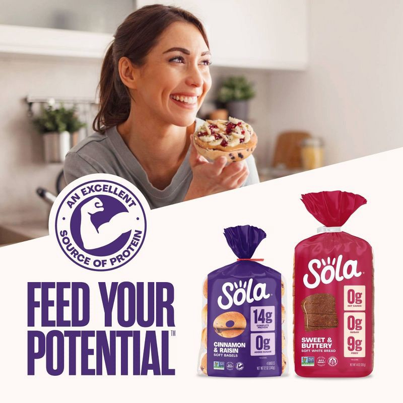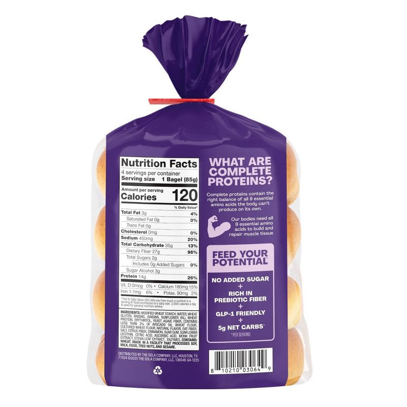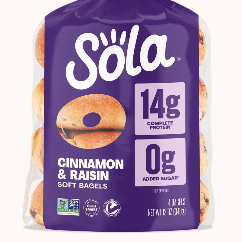 Experience the delightful fusion of sweet cinnamon and juicy raisins with Sola's Cinnamon & Raisin Bagel, a New York-style bagel that not only satisfies your cravings but also fuels your day with whol…