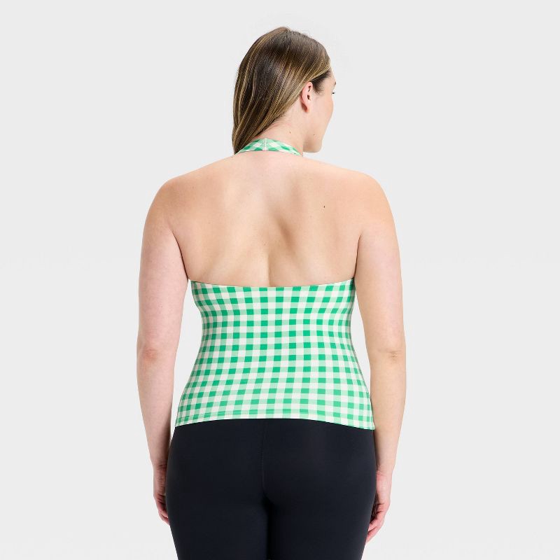Women's Everyday Soft Halter Neck Support Tank Top - All in Motion™ Forest Green Gingham XL