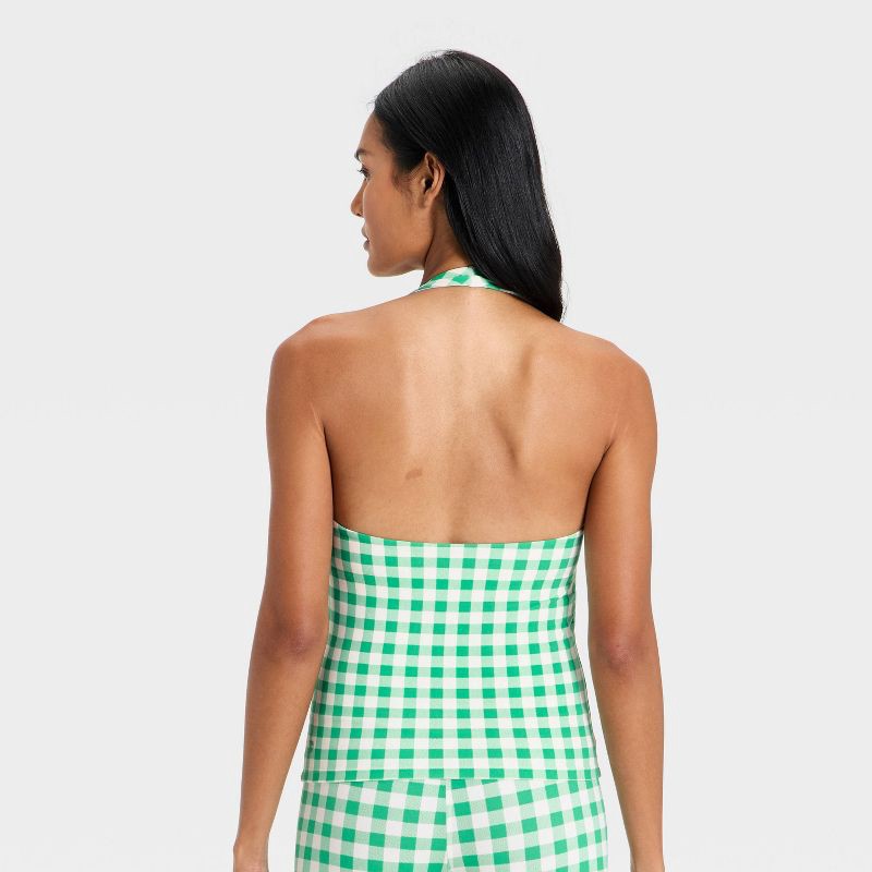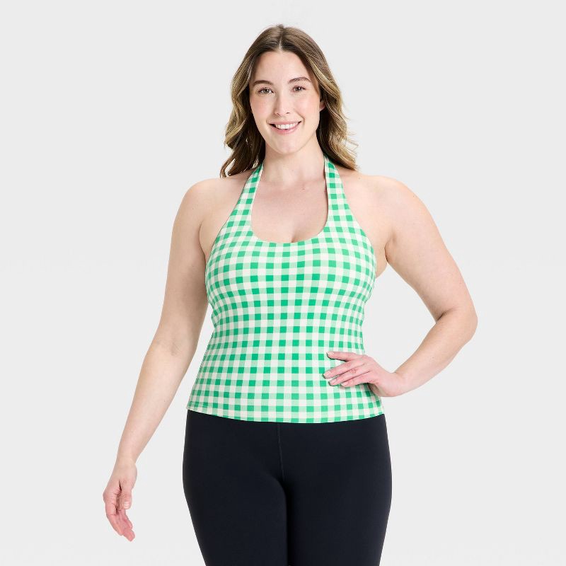 Women's Everyday Soft Halter Neck Support Tank Top - All in Motion™ Forest Green Gingham XXL