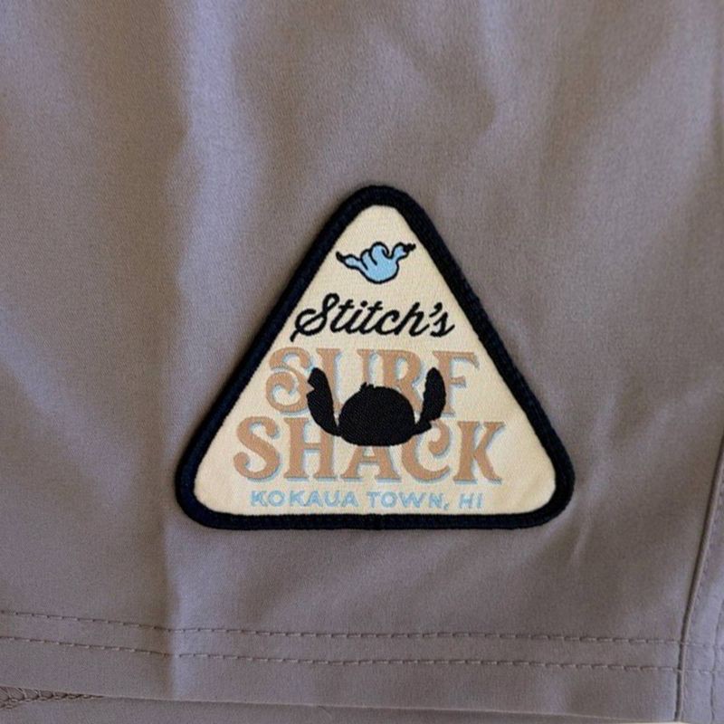 - Mauve color with "Stitch's Surf Shack" patch on one leg