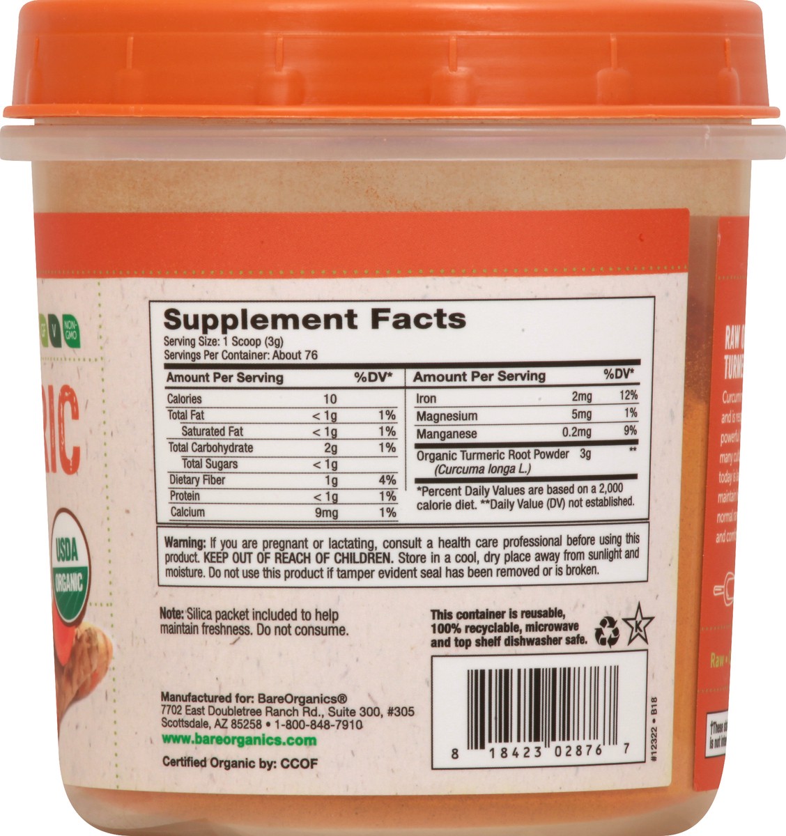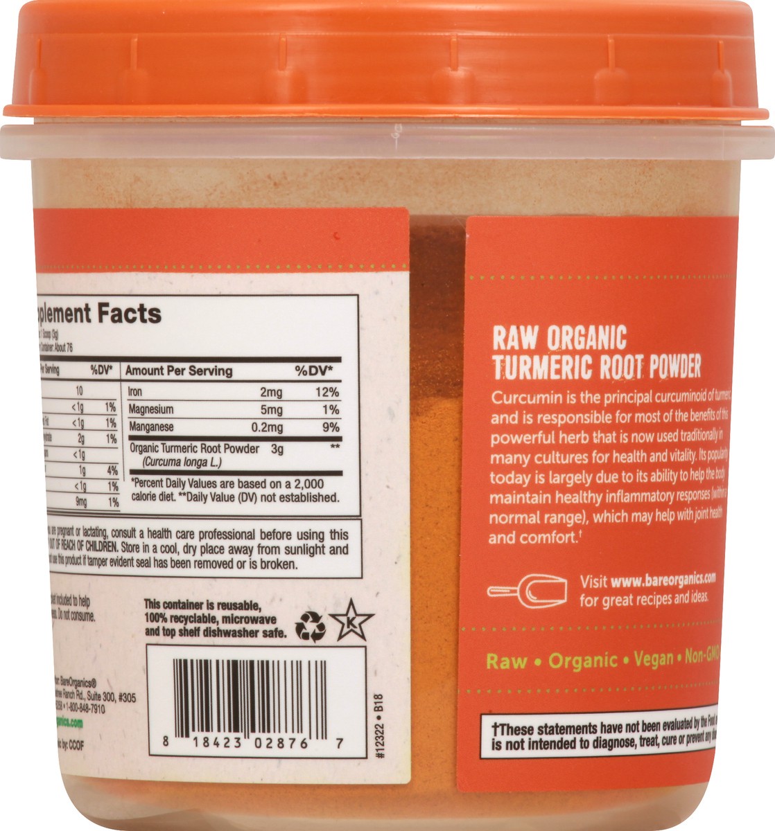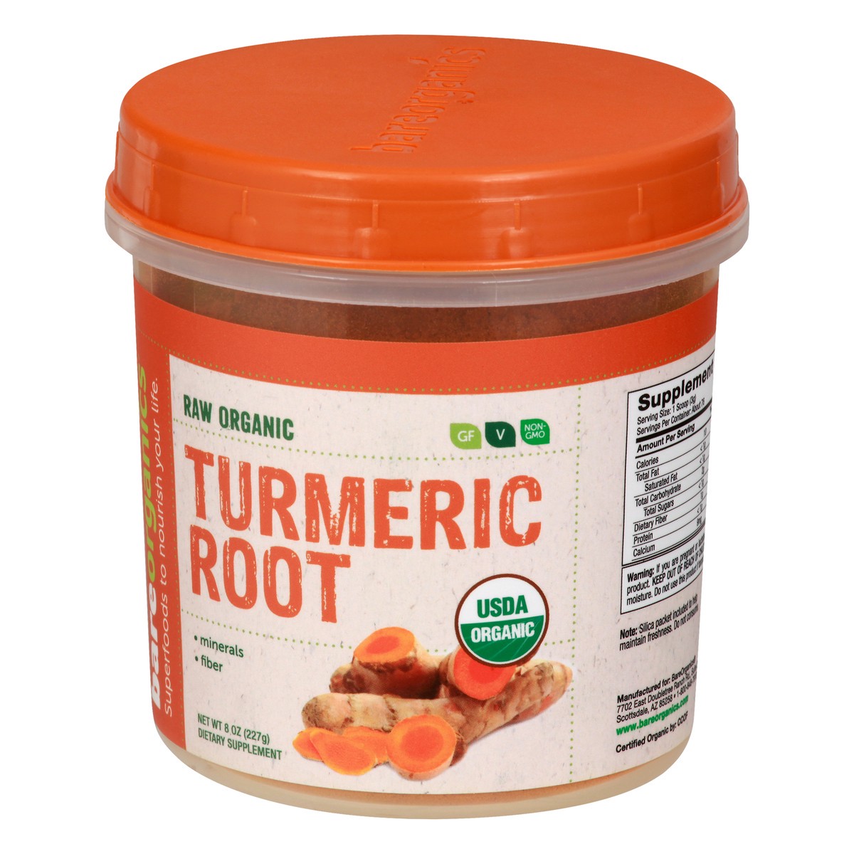 Dietary Supplement. USDA Organic; Vegan; Gluten Free; Certified Organic by: CCOF. Non-GMO. Superfoods to nourish your life. Minerals. Fiber. Raw organic Turmeric Root Powder. Curcumin is the principal…