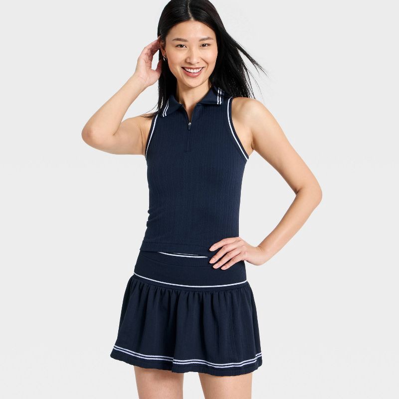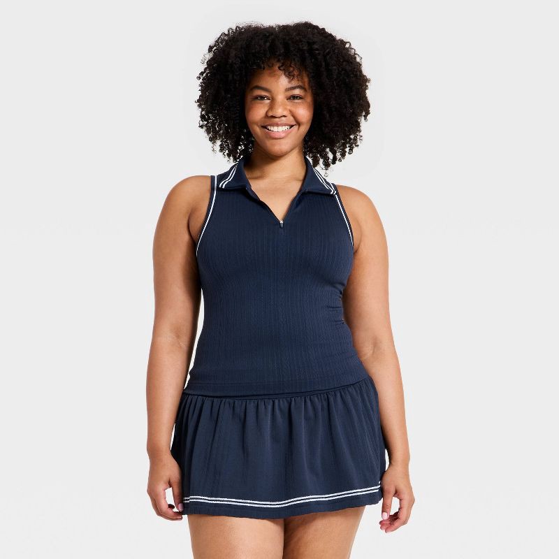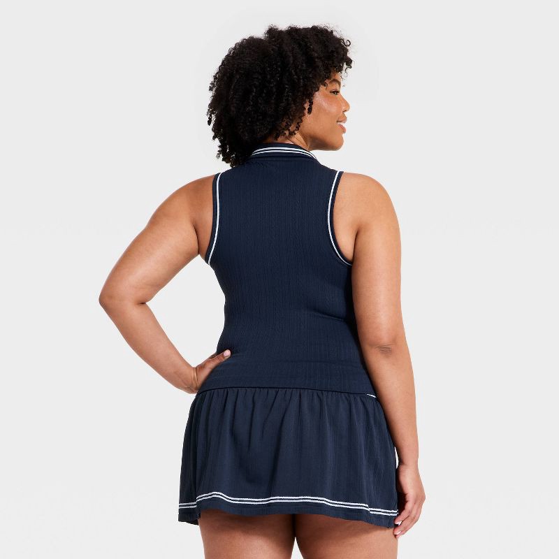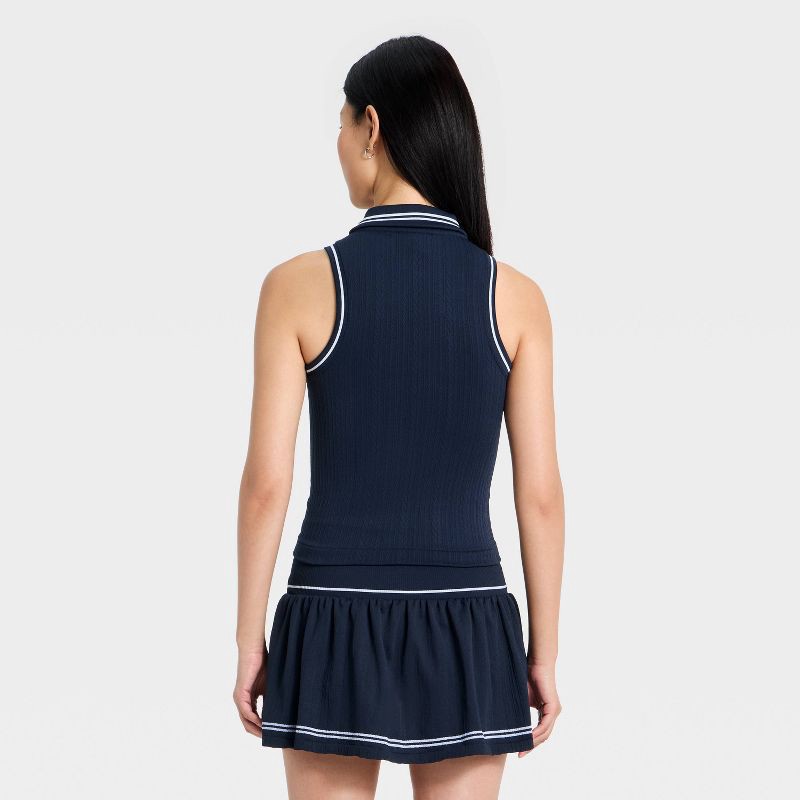 Women's Seamless Cable Polo Tank Top - All In Motion™ Navy Blue XS