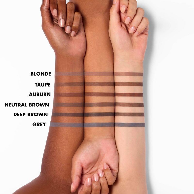 - Long-lasting waterproof eyebrow pencil with spoolie brush for grooming and shaping brow hairs