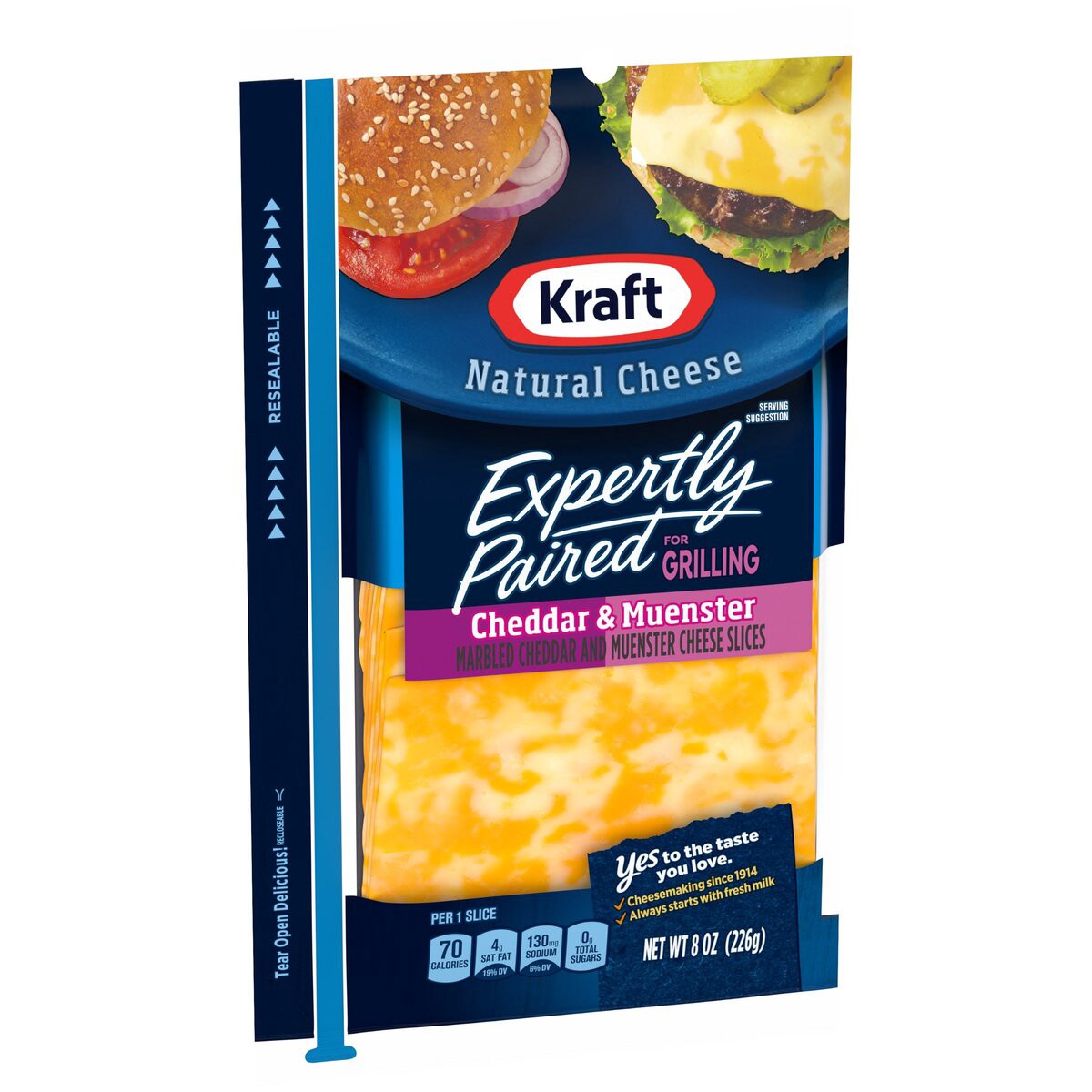 - Kraft Expertly Paired Cheddar and Muenster Cheese Slices backed by years of cheese-making experience