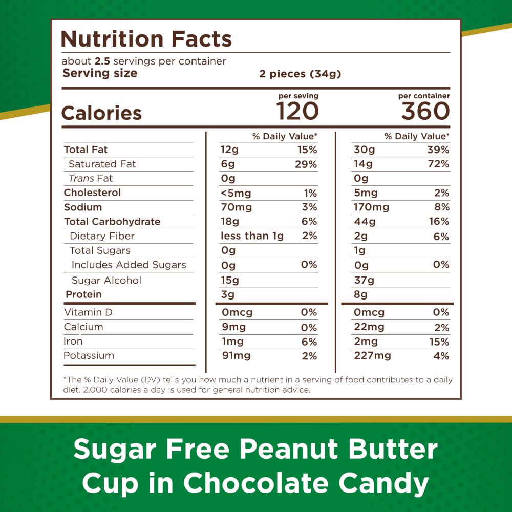 Chocolate Candy (Maltitol, Cocoa Butter, Chocolate, Sodium Caseinate (Milk), Milk Fat, Soy Lecithin (Emulsifier), Natural Flavor, Salt, Stevia Leaf Extract), Peanut Butter (Dry Roasted Peanuts, Hydrog…