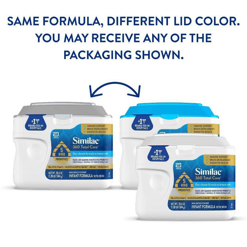 Similac 360 Total Care* infant formula is made with an exclusive blend of 5 HMO prebiotics structurally identical to those in breast milk. Our formula also has nutrition designed for immune support, b…