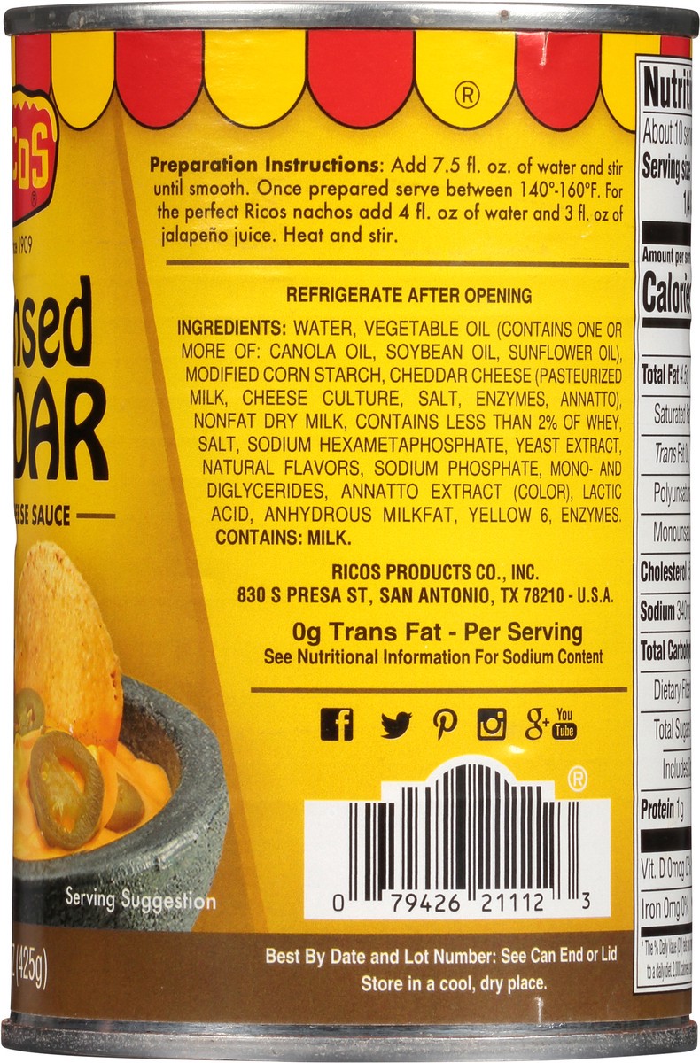 Rico's Aged Condensed Cheddar Cheese Sauce 15 oz