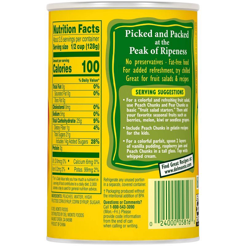 - Made with peaches picked and packed at the peak of ripeness and immersed in heavy syrup