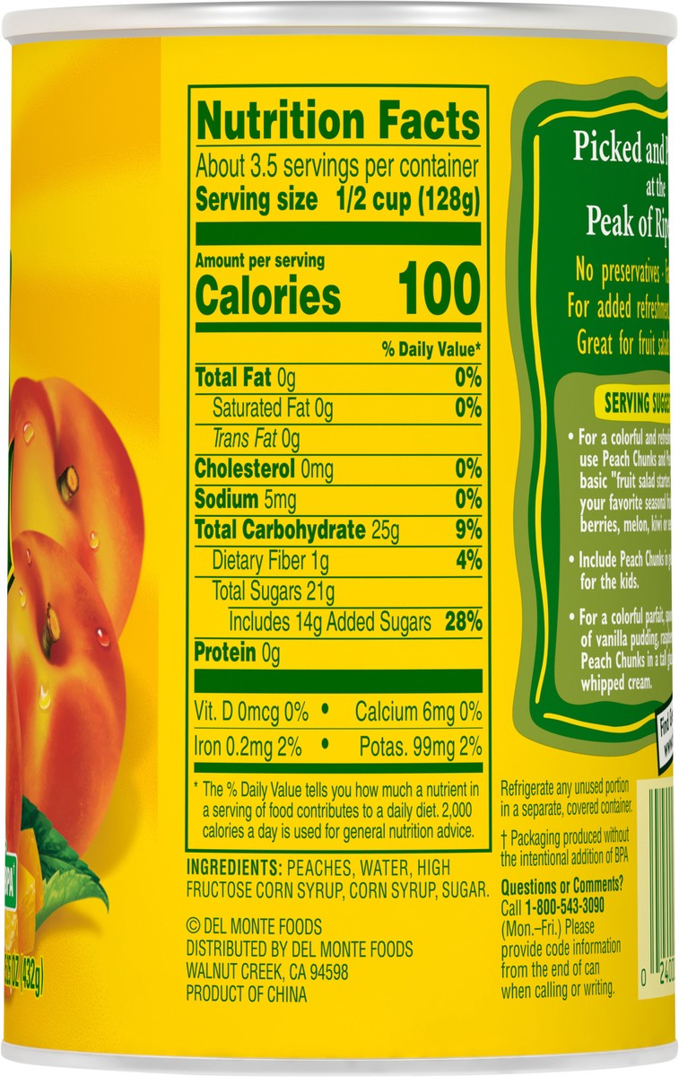 Del Monte Yellow Cling Peach Chunks In Heavy Syrup - 15.25 Oz