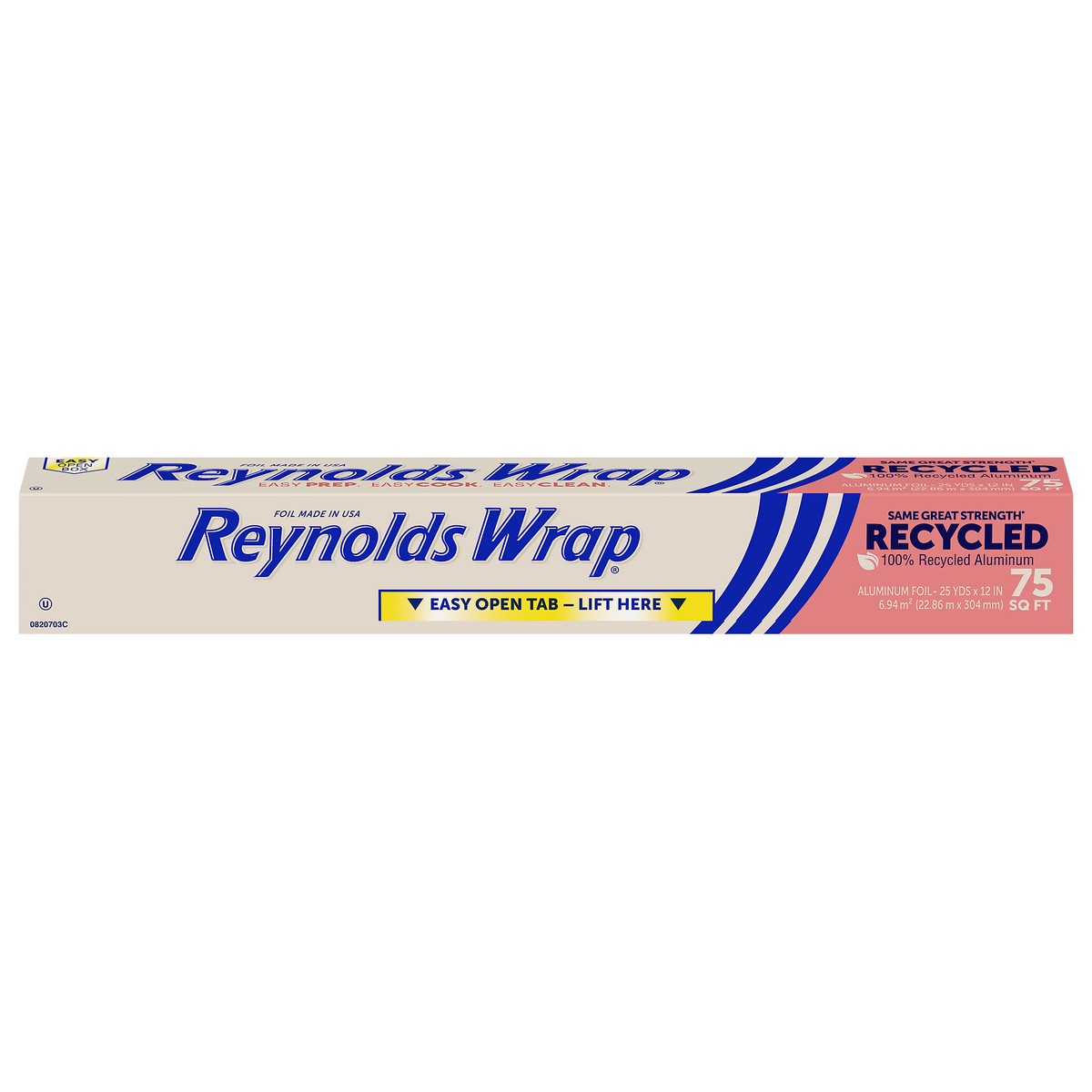 - Package Includes—One (1) Reynolds Wrap Recycled Aluminum Foil Roll measuring 6.25 feet long by 12 inches wide (75 square feet total)