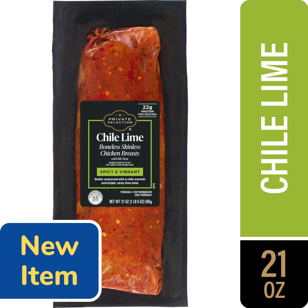 Private Selection® Chile Lime Boneless Skinless Chicken Breasts are mouthwateringly magnificent. Boldly seasoned with a chile warmth and bright, zesty lime twist. With 22g protein per serving, each bi…