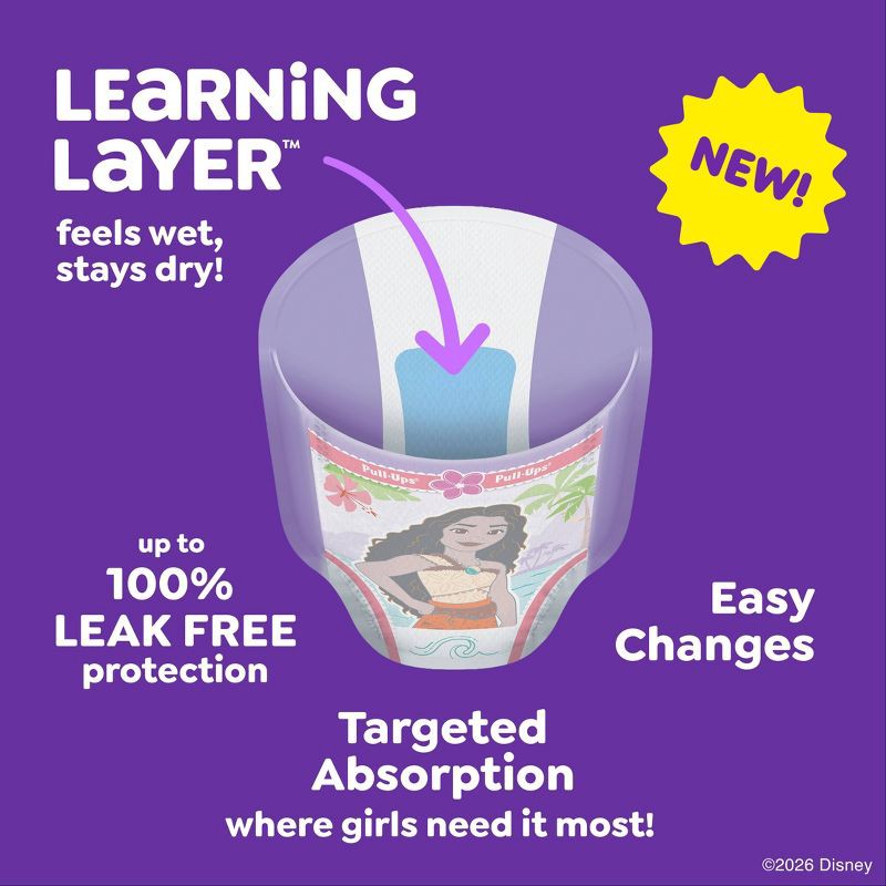 Pull-Ups Girls' Potty Training Pants, size 6T–7T, are designed to help kids learn and grow with confidence. The Learning Layer helps children notice wetness while staying dry, making every accident a …