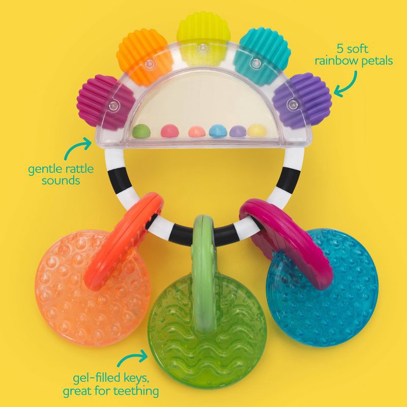 - 5 rainbow soft petals to teethe on