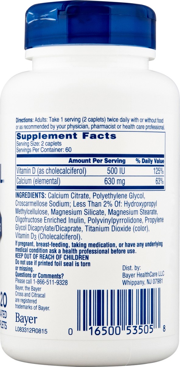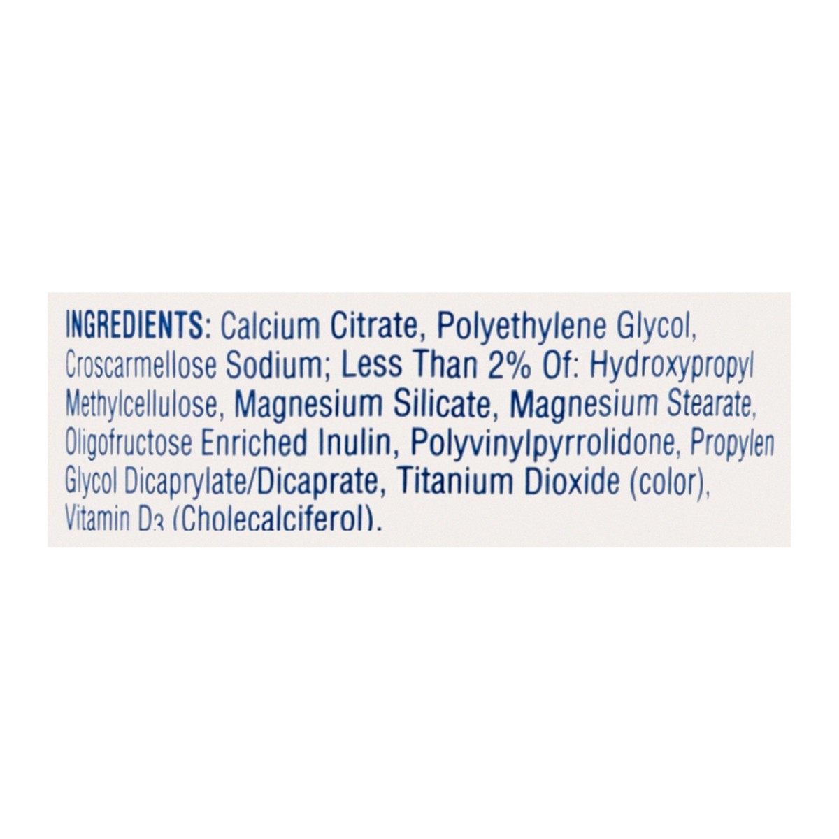 Calcium Citrate, Polyethylene Glycol, Croscarmellose Sodium; Less than 2% of: Hydroxypropyl Methylcellulose, Magnesium Silicate, Magnesium Stearate, Oligofructose Enriched Inulin, Polyvinylpyrrolidone…