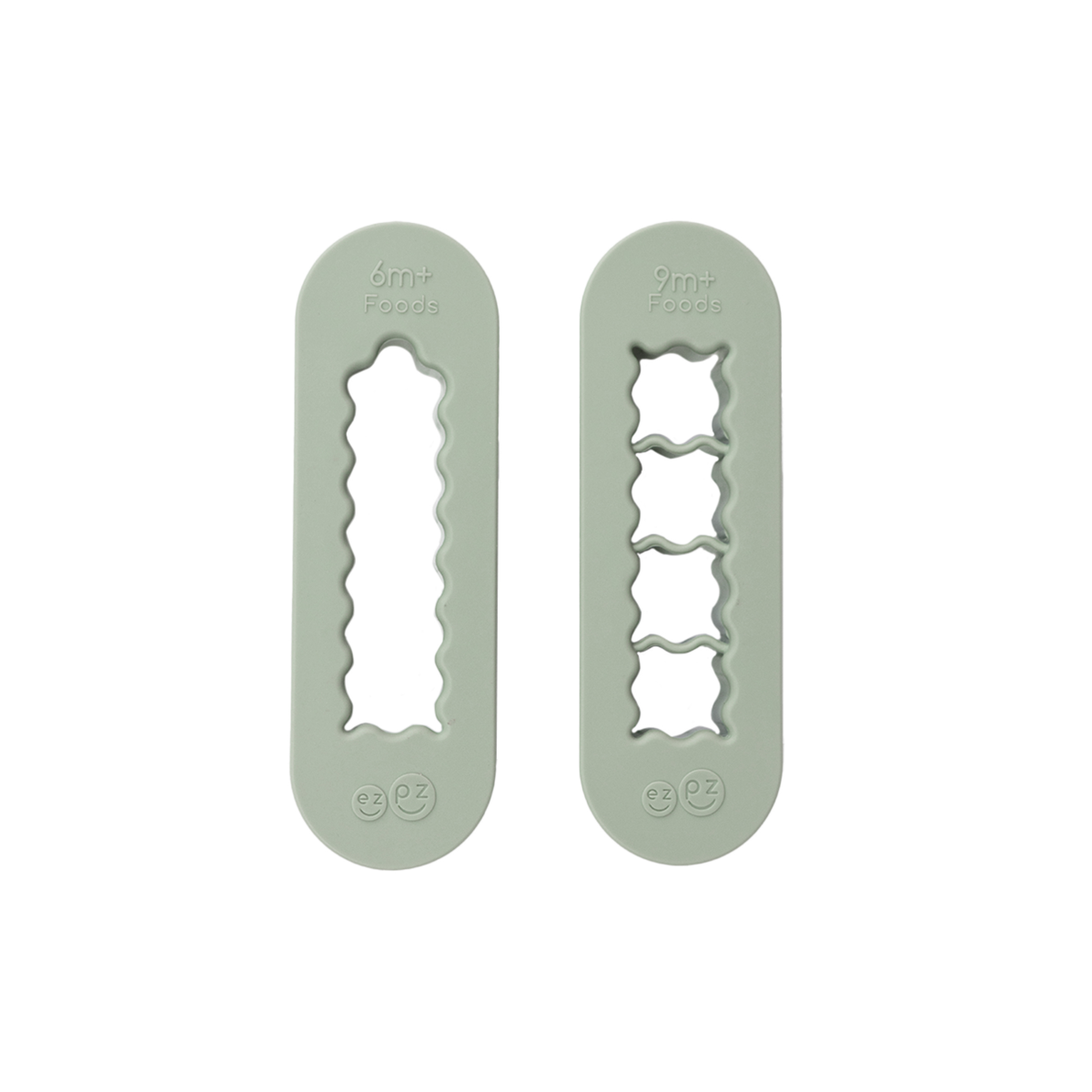 The ezpz food cutters make baby-led weaning food prep ezpz! Start with the food cutter for food strips (6m+) to promote the palmar grasp. At 9m+ layer in the cubed food cutter to promote the pincer gr…