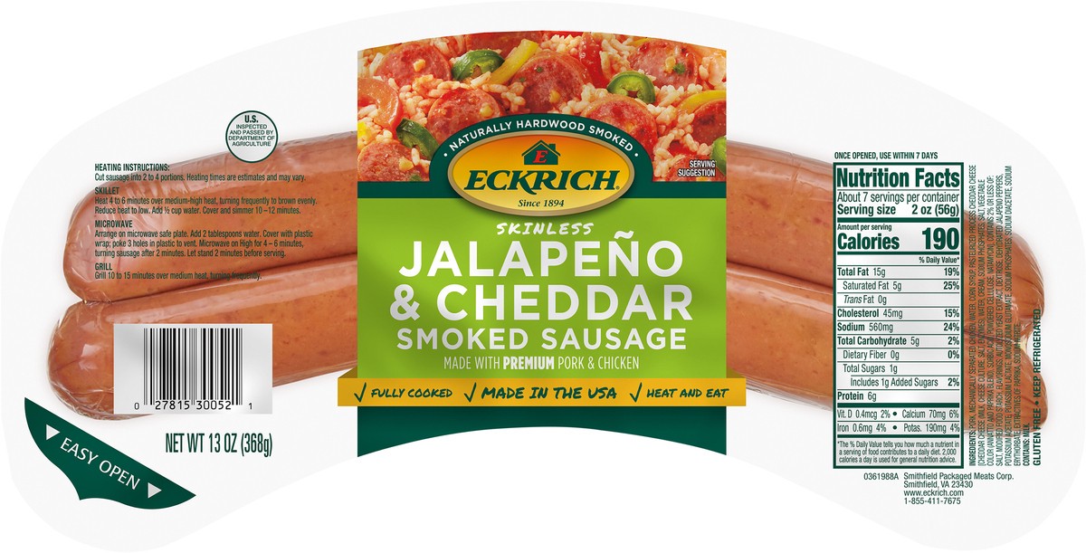 Eckrich Skinless Jalapeno & Cheddar Smoked Sausage - 13 Oz