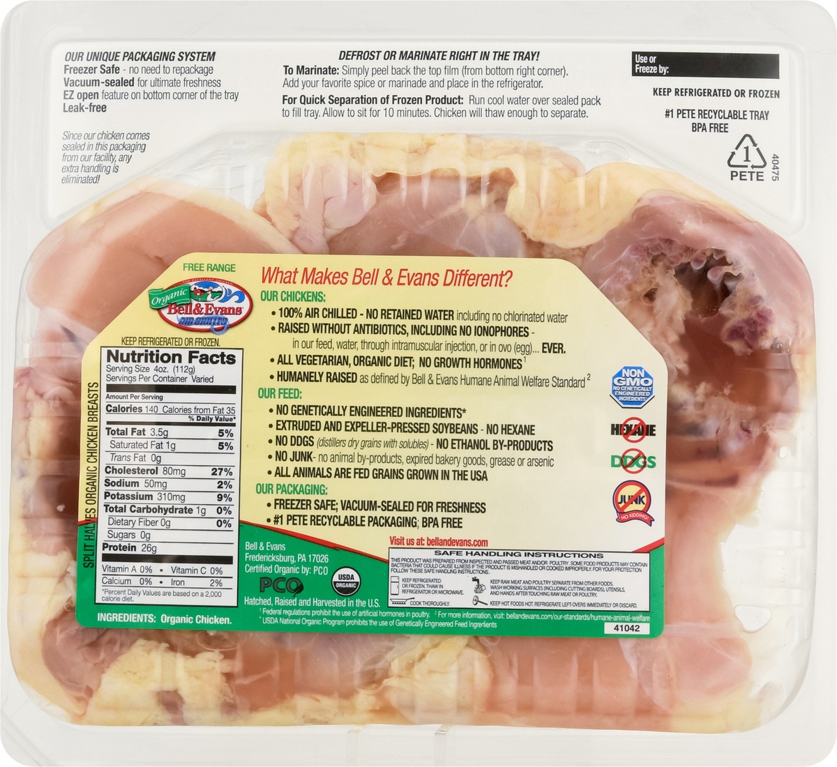 Bell & Evans Organic Free Range Bone-In Split Chicken Breasts