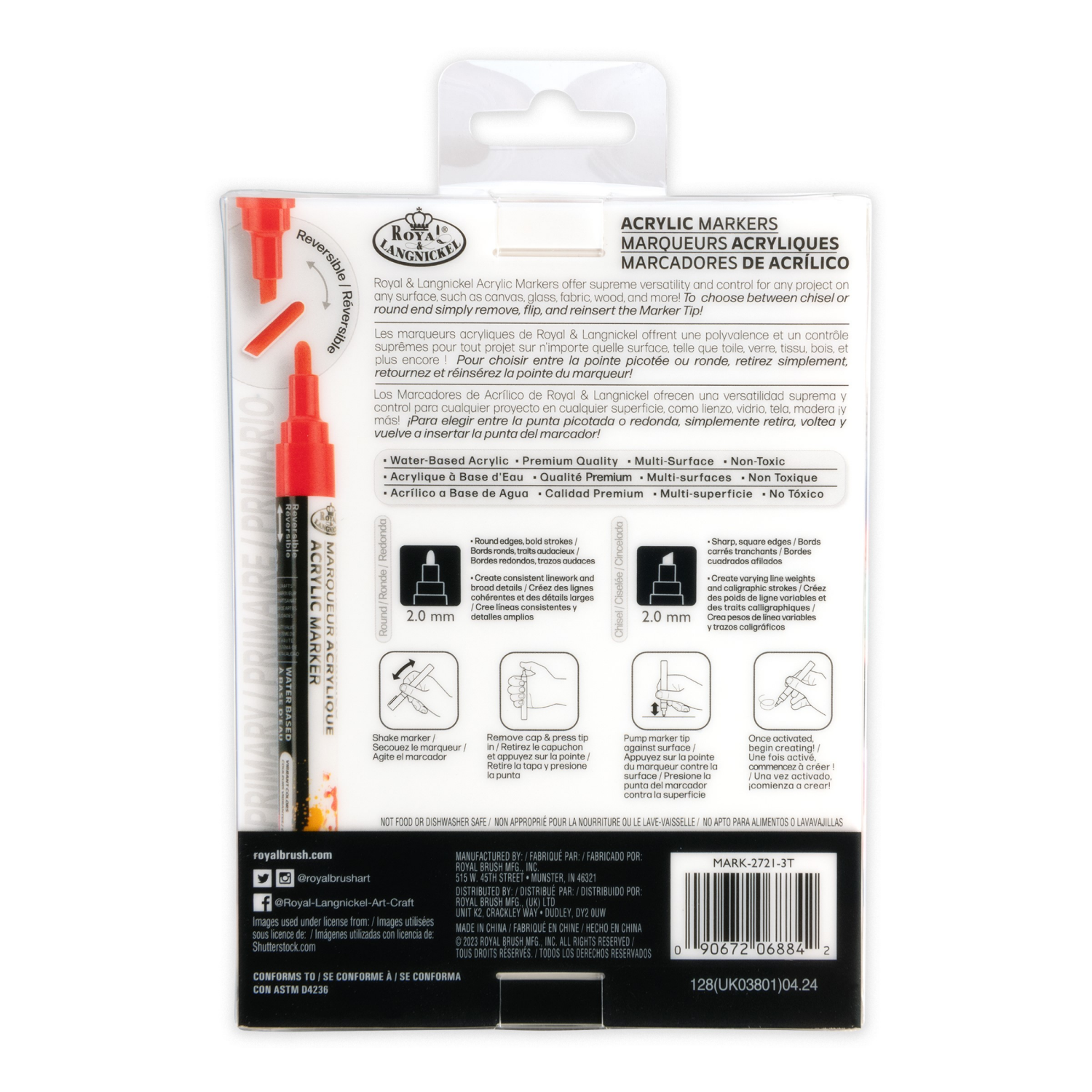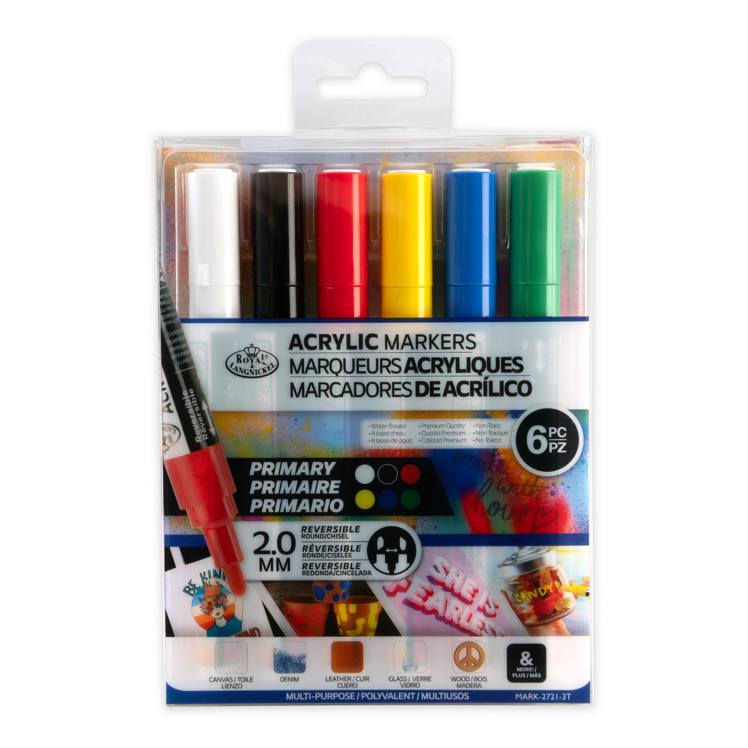 Royal & Langnickel 2mm Acrylic Painting and Drawing Markers with Reversible Tip, 6 pc Primary Colors