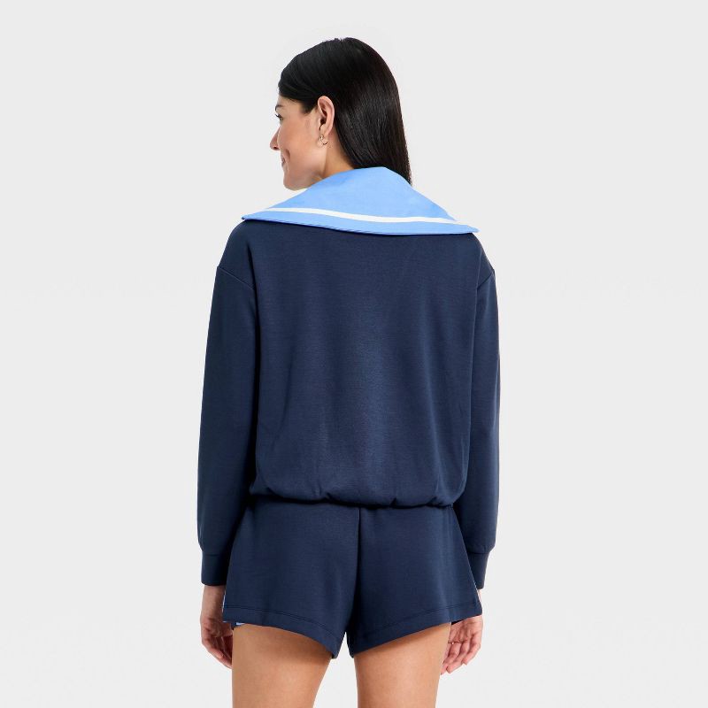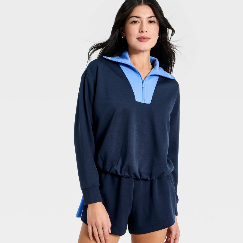Women's Airy Sleek Pique 1/2 Zip Bubble Hem Pullover Sweatshirt - All In Motion™ Navy Blue L