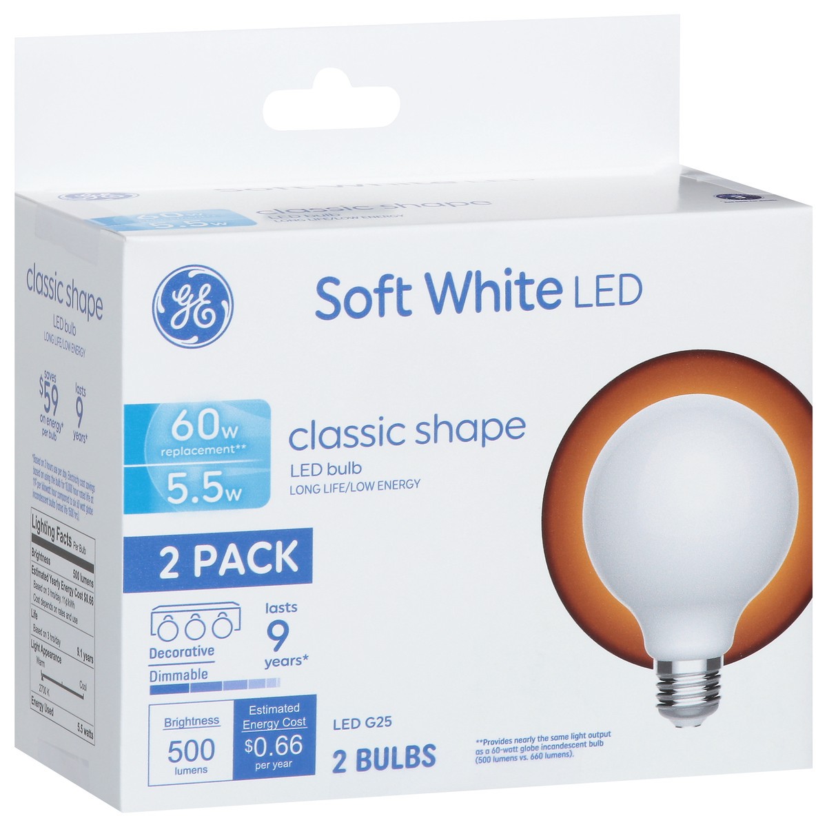 Ge Led 60w Sw Globe G25 Clear - 2 Ct