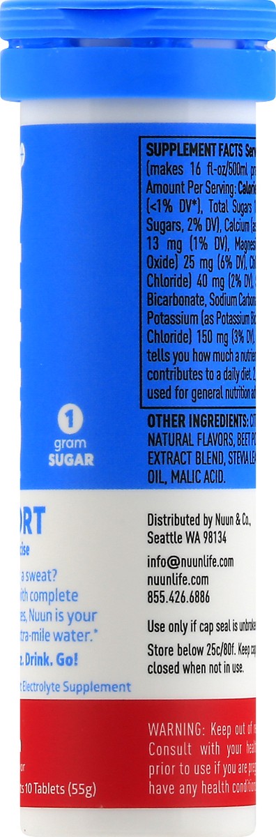 Effervescent Electrolyte Supplement. Natural flavor. 1 gram sugar. 15 calories. Vegan. Gluten free. Non GMO Project verified. nongmoproject.org. For Exercise: Breaking a sweat? Packed with complete el…