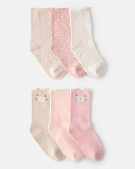 Carter's Girls 6-Pack Critter Crew Socks - Pink/Ivory, Sizes 8-14