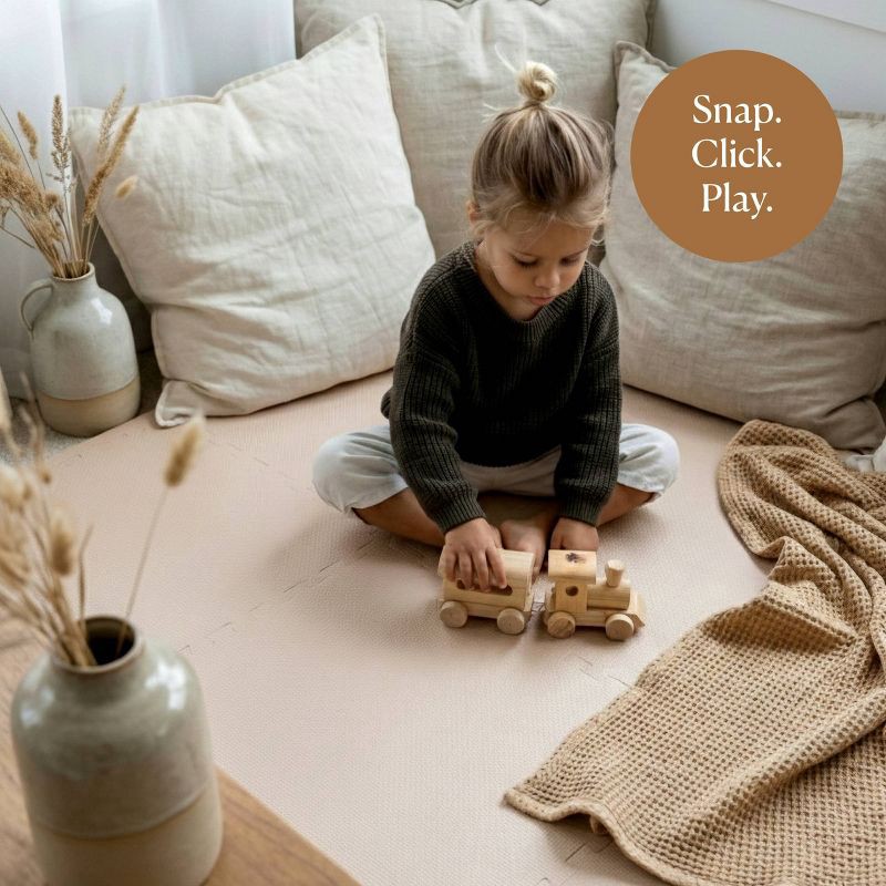 - Premium modular foam puzzle playmat in Clay, a warm neutral tone for modern homes