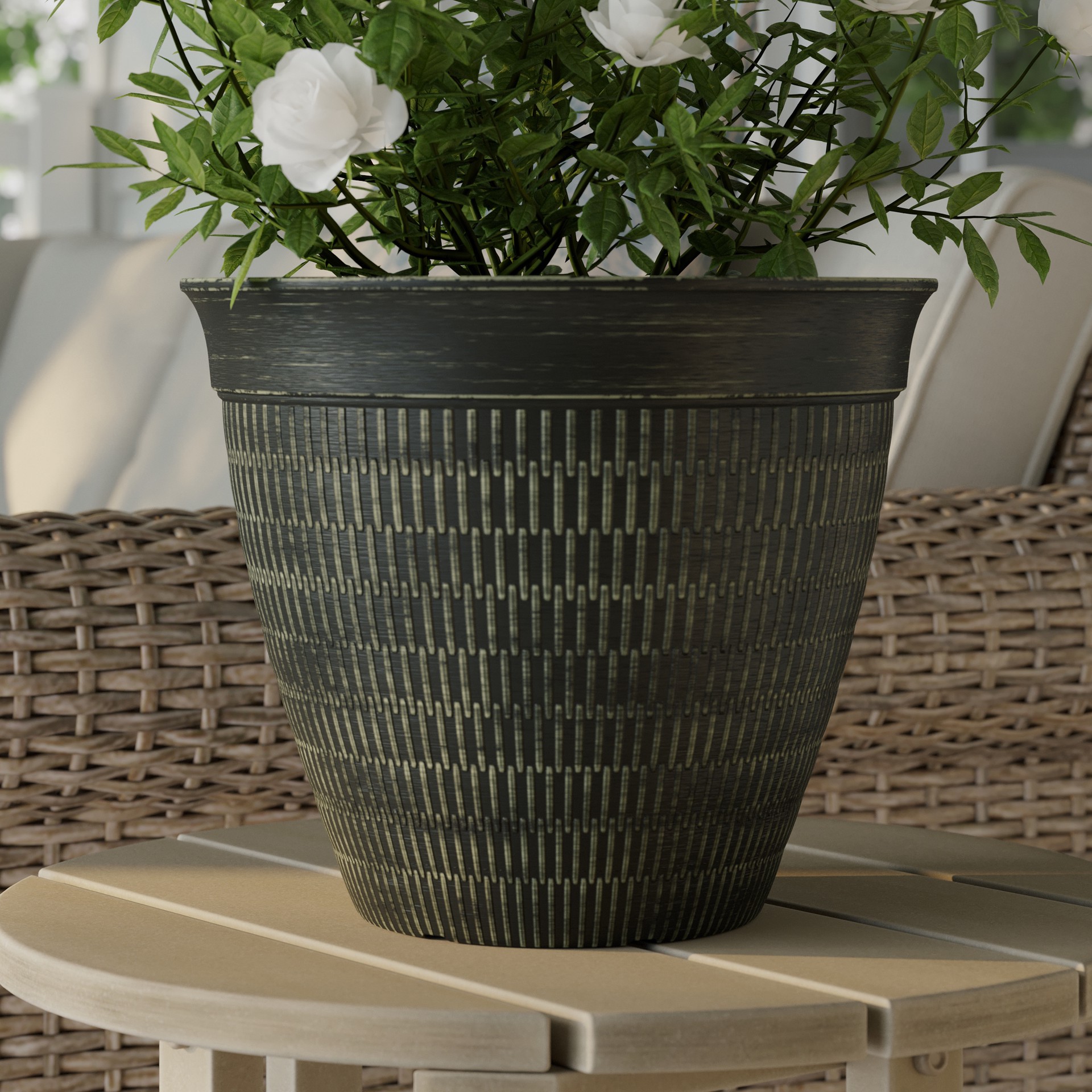 Style Selections Round 11.26-in W x 11.26-in L x 9.45-in H Brushed Champagne Recycled plastic Indoor/Outdoor Planter