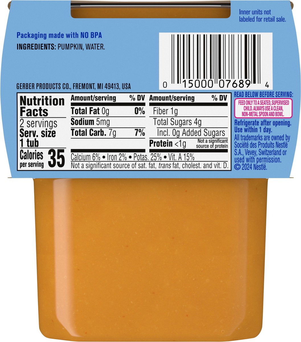 Gerber 2nd Foods Natural Pumpkin Baby Food Tub - 2-4 Oz