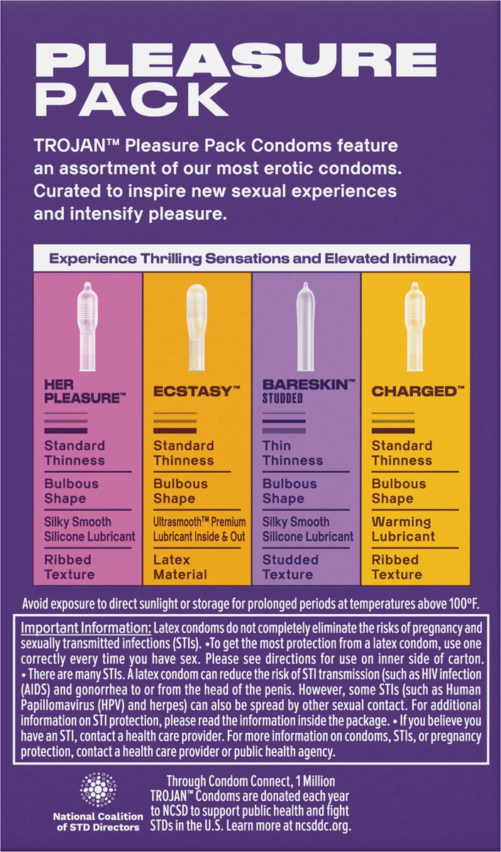 Trojan Pleasure Variety Pack Lubricated Condoms, 12 Count, 1 Pack features an assortment of our most stimulating condoms to provide sensual excitement for both partners every time. This multi-pack inc…