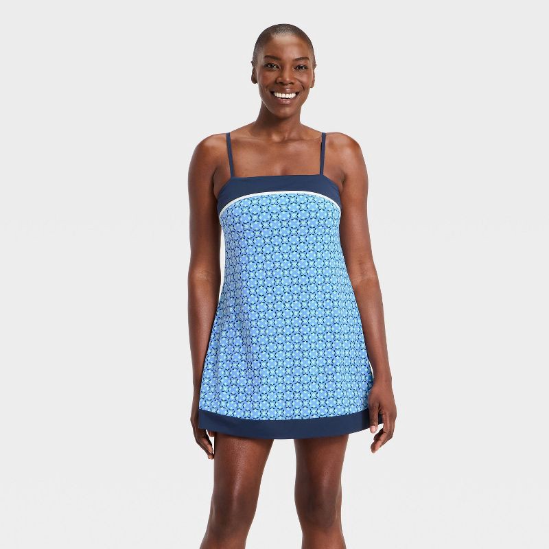 Women's Everyday Soft Active Court Dress - All In Motion™ Blue Floral Print XXL