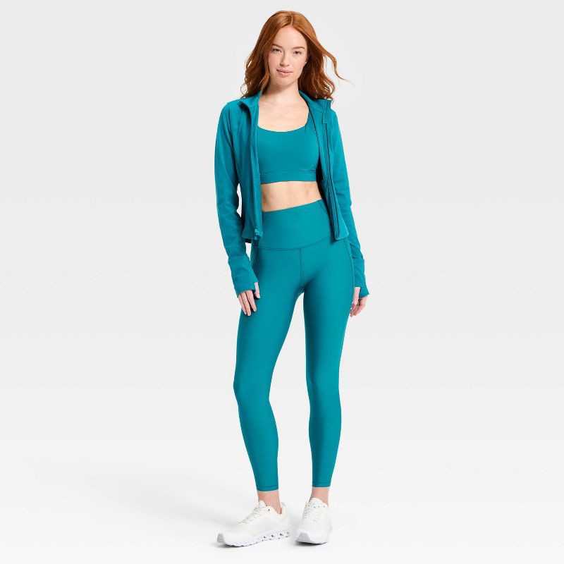 Women's Effortless Support High-Rise Pocketed 7/8 Leggings - All In Motion™ Dark Teal Blue M