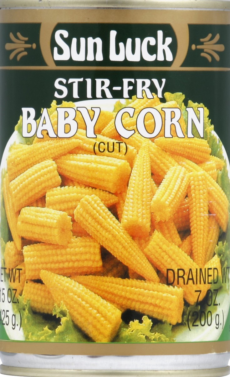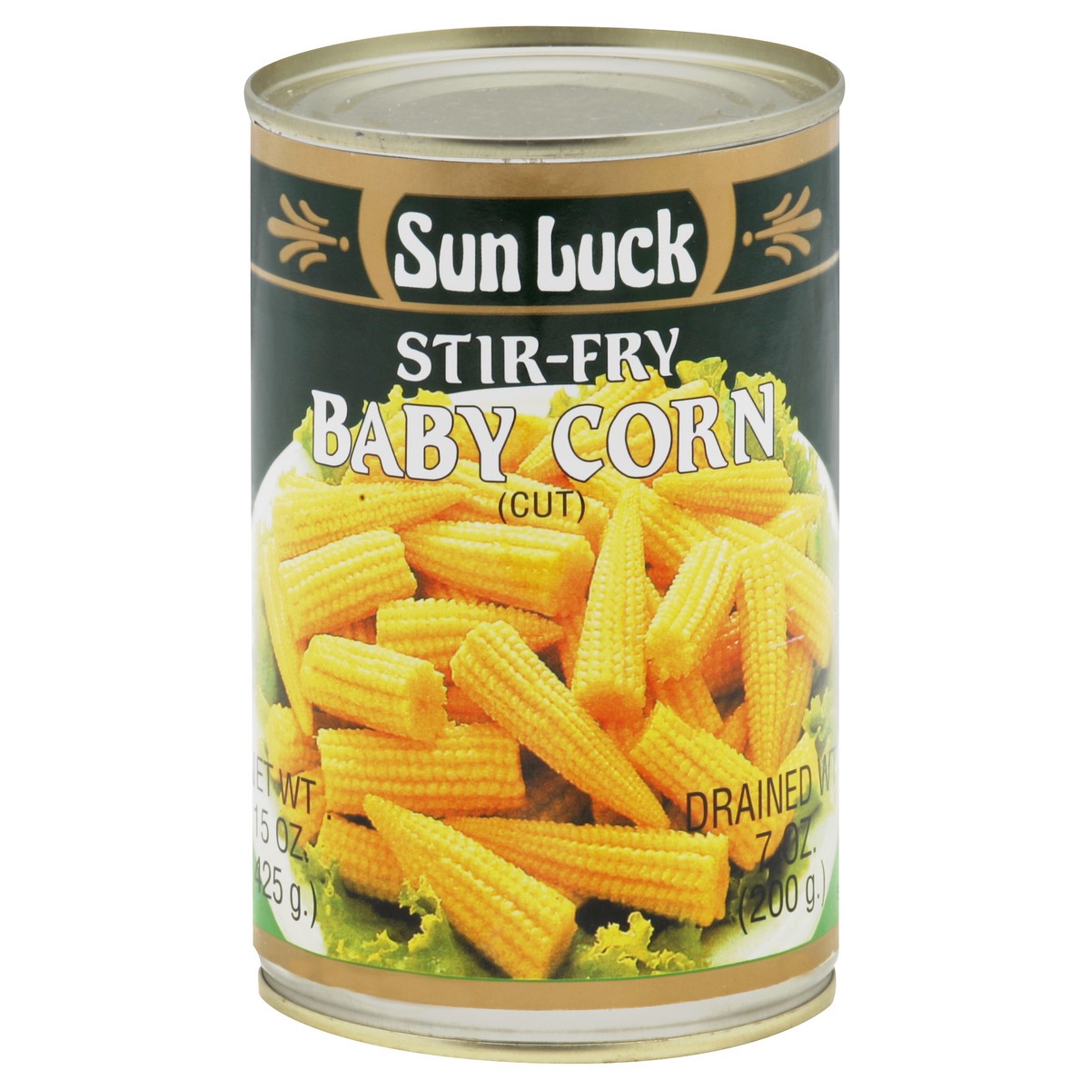 Drained wt: 7 oz (200 g). Sun Luck Stir Fry Baby Corn will add a delightful taste and color to salads, relish trays, and stir fry dishes. Heat and add butter for a delicious appetizer. Quality guarant…