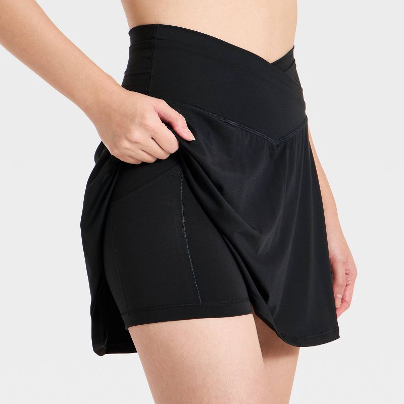 Women's Everyday Soft Mid-Rise Crossover Waistband Skort 14.5" - All In Motion™ Black S